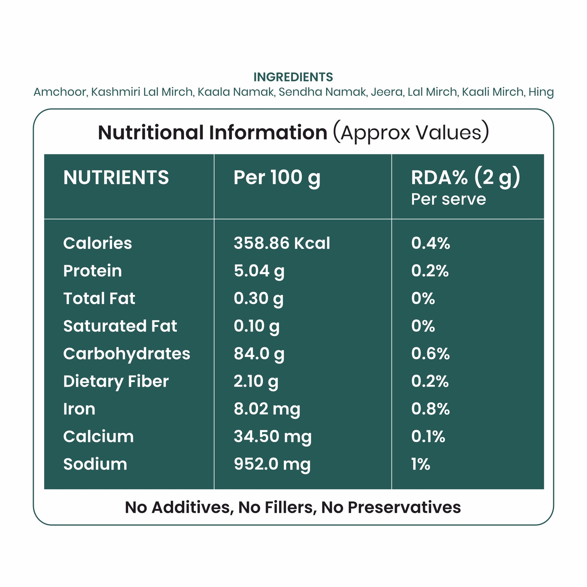 Amchoor, Kashmiri Lal Mirch, Kaala Namak, Sendha Namak, Jeera, Lal Mirch, Kaali Mirch, Hing