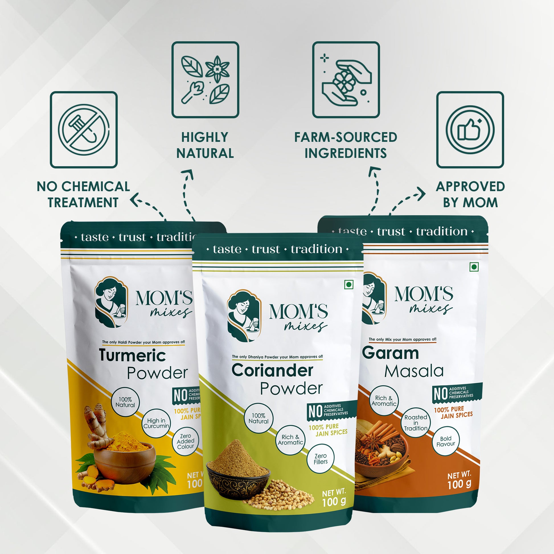 Experience the deep golden richness of pure Haldi, the bright, earthy sophistication of freshly milled Coriander, and the layered complexity of our artisanal Garam Masala. Free from preservatives and made with uncompromising attention to quality, this trio brings timeless authenticity and effortless elegance to every dish. A refined choice for families who value both tradition and exceptional flavour.