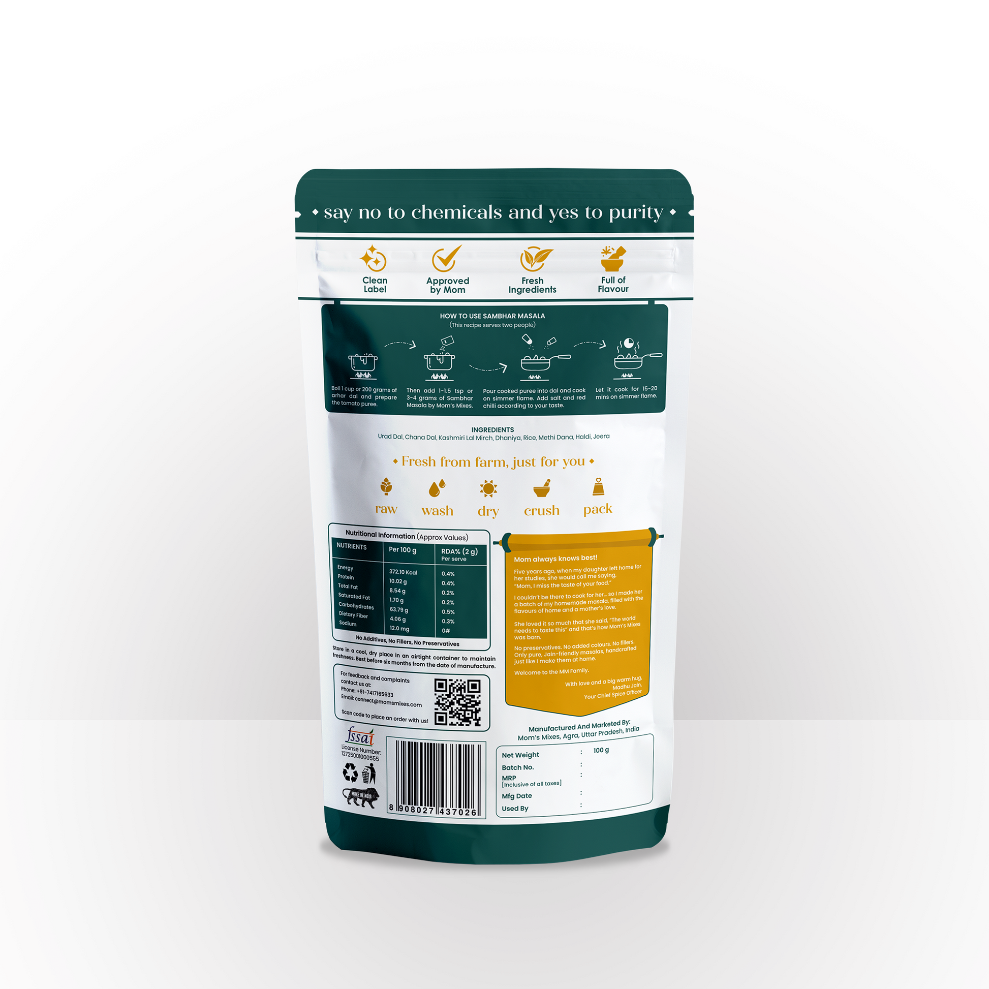 Enjoy Mom’s Mixes favourites in one pack with Sambhar Masala, Everyday Magic Mix, and Garam Masala. Fresh, preservative-free, and aromatic blends crafted in small batches for authentic, everyday cooking.